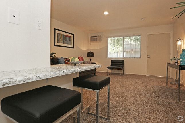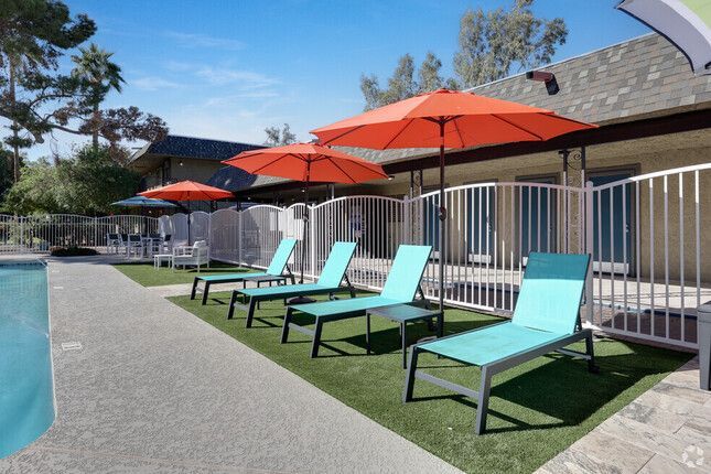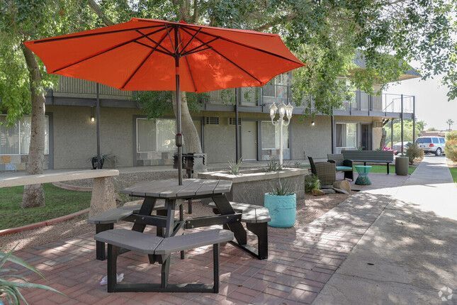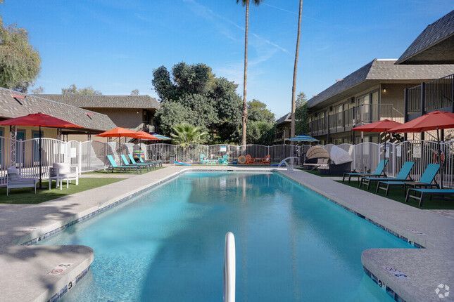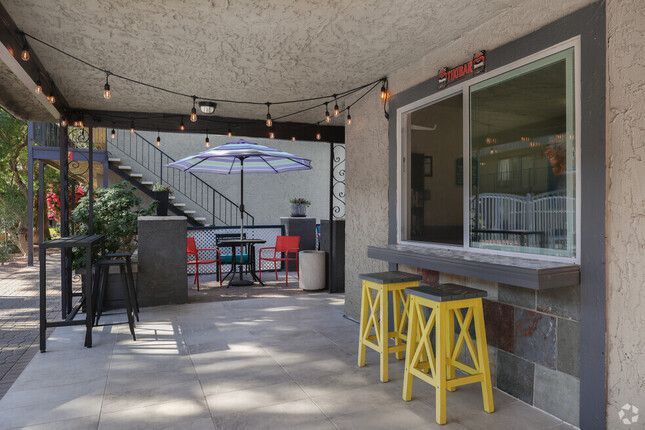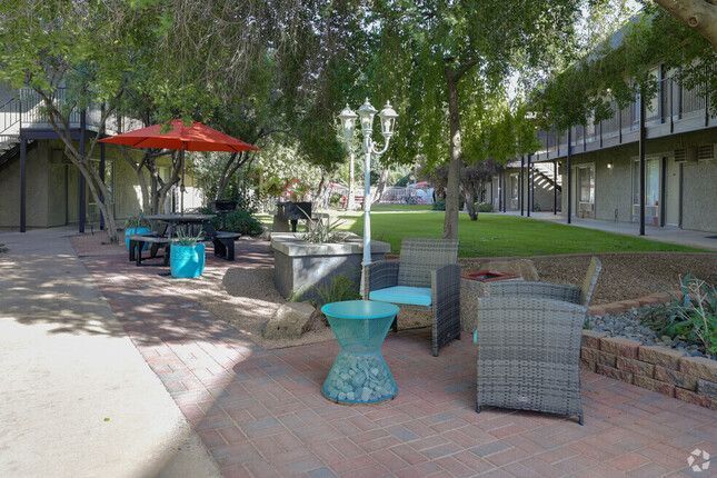 The property offers economically smart, boutique-like living with contemporary one bedroom and studio apartments. We are nestled in a lush, park-like setting at the West end of the newly designed Fiesta District. The Fiesta District is a pedestrian friendly activity hub. Public transit abounds to get you where you want to go. Lined with beautiful trees, flowers, benches, sculptures, a bike valet and so much more. More than 40 restaurants and 50 retail stores. Mesa Community College, Arizona State University and Banner Desert Hospital are only a skip away. Minutes away from the US 60 and 101 for easy commutes!